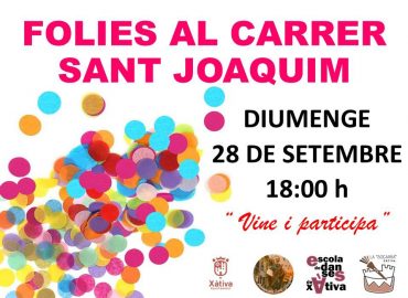 El pròxim 28 de setembre es celebraran folies al carrer Sant Joaquim a les 18:00 hores de la vesprada.