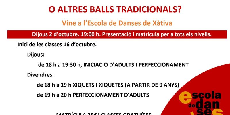 L’Escola de Danses de Xàtiva actuarà el pròxim 26 de setembre en la plaça de la Vila de Vallés.