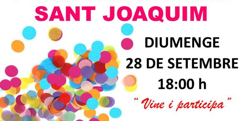 El pròxim 28 de setembre es celebraran folies al carrer Sant Joaquim a les 18:00 hores de la vesprada.
