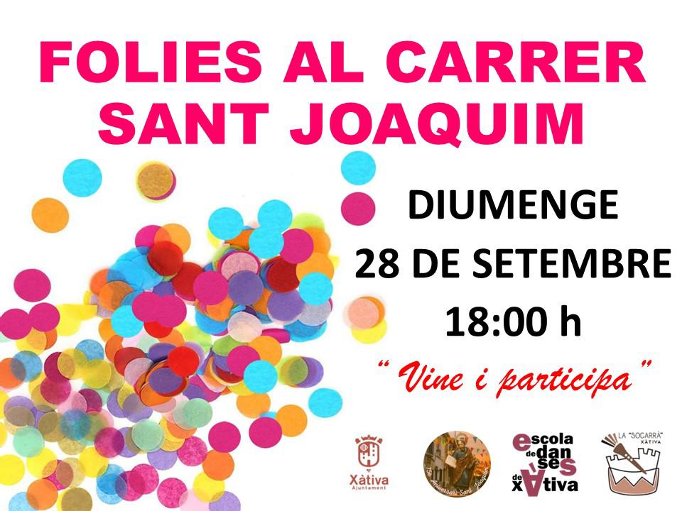 El pròxim 28 de setembre es celebraran folies al carrer Sant Joaquim a les 18:00 hores de la vesprada.