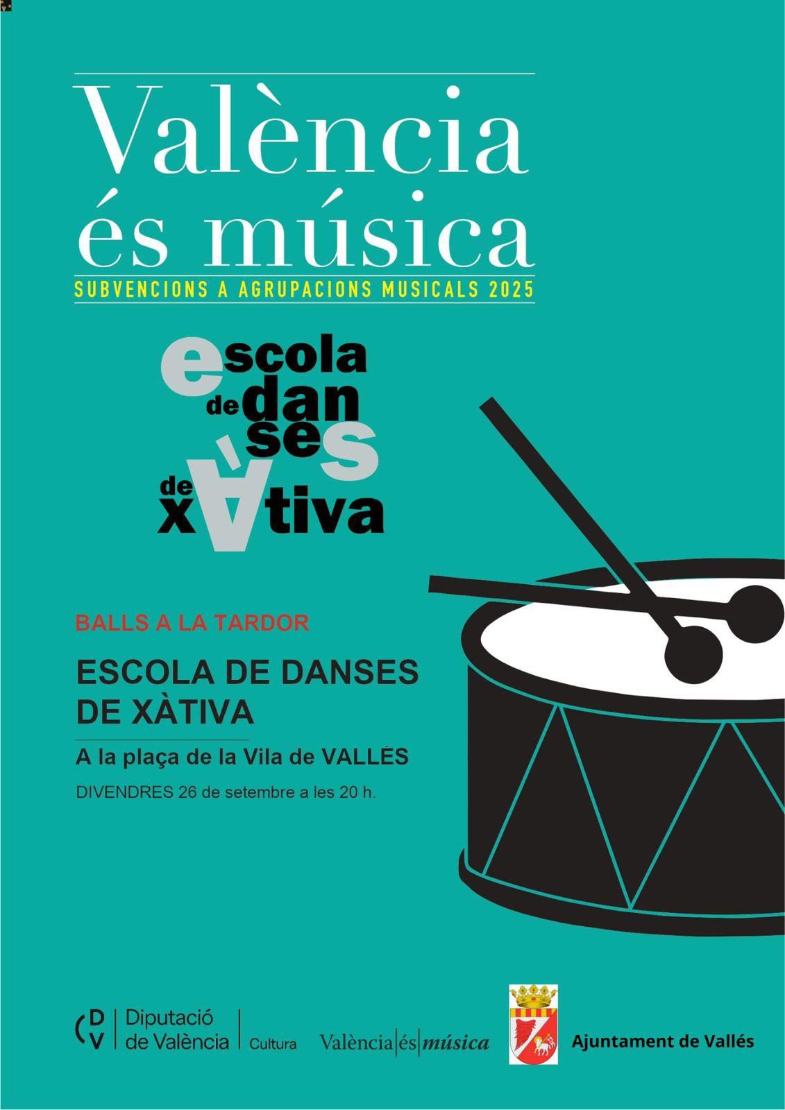 València és música 2025 12 de setembre de 202512 de setembre de 2025 EscolaDansesXàtiva L’Escola de Danses de Xàtiva actuarà el pròxim 26 de setembre en la plaça de la Vila de Vallés.